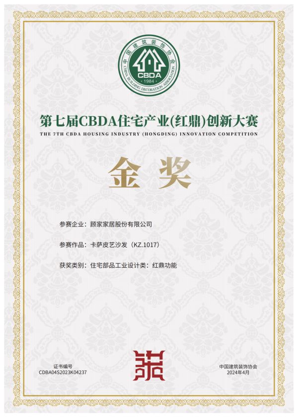 值得一提的是,在会上,顾家星选产品KZ.1017[卡萨]荣获由中国建筑装饰协会颁发的“红鼎奖”金奖,顾家家居一体化产品设计能力获得行业认可。