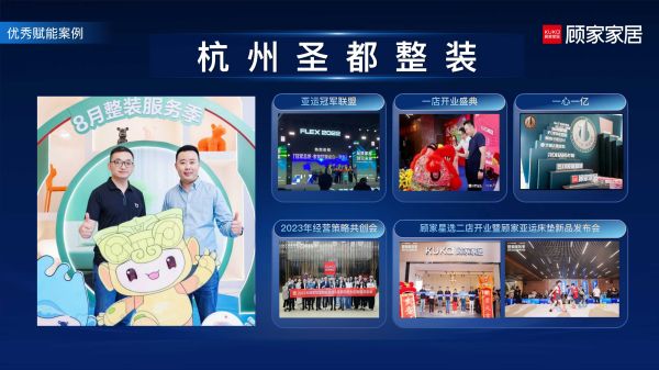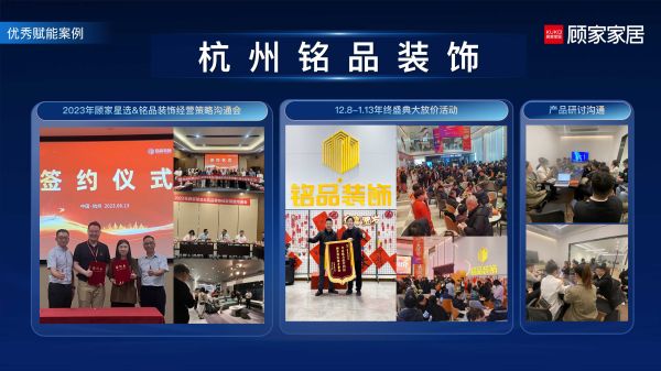 在多样化合作模式的赋能下,未来三年,顾家星选整装业务将全面开展“百城千万计划”,在3年打造100家顾家星选提货业绩超过1000万的装企,带动一体化整家赋能装企的新风潮。其中,杭州圣都三月单月定制业绩突破600万元,,2023年全年销售突破4000万元基础上,2024年计划销售目标超1亿元,定制销售目标超5000万元;杭州铭品装饰2023年终盛典活动中定制产品导入200单,整装订单数量超600单,整装预估产值突破1.5亿元;北京爱空间客需满足率达97.3%,供应链承诺软体产品由原来的30天齐套交付缩短到21天交付,2024年销售目标计划突破6000万元。