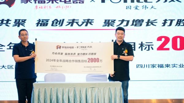 据悉,2024年是家福来电器与方太厨电战略签约合作的第二年,在过去的一年,双方在企业战略布局、行业发展趋势到方太旗舰产品营销等各方面都取得了不错的成绩。而在此次活动现场,四川家福来实业集团有限公司家电公司总经理樊勇先生、方太集团川渝大区总经理鲍盛先生签署了“2024年战略合作协议”,双方就未来在优化消费场景、增强营销联合赋能,场景体验提升等各个方面达成更深入和广泛的合作,这也标志着双方战略合作将进入一个崭新的阶段。