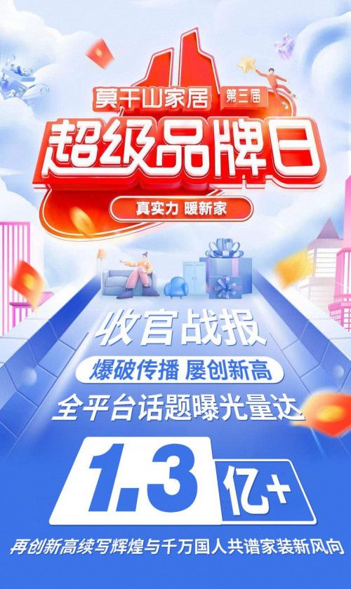 莫干山家居第三届超级品牌日活动圆满收官,此次活动凭借出色的活动创意和深厚的品牌实力,成功吸引了全网关注,活动热度突破1.3亿+,20万+用户参与互动,硬核出圈,成为家居市场的一大盛事!
