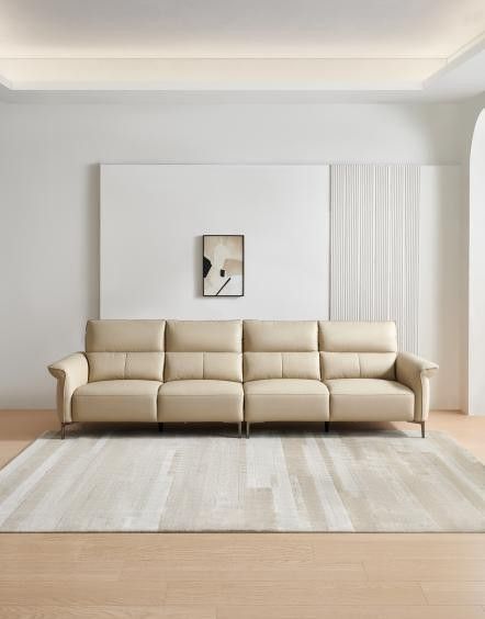 现代简约牛皮沙发,选用进口头层黄牛皮,触感细腻温润,透气性优越。分段T字靠包,撑腰护脊,坐姿不局限,舒适惬意。“天鹅颈”外扩靠枕扶手,宽大饱满,搭靠、舒睡都惬意。