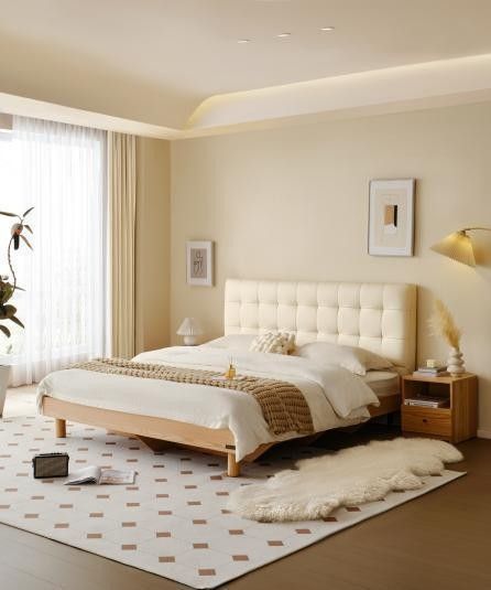 原木风软包床,可爱苏打饼干造型,满满的治愈感。生态科技皮柔软亲肤,细腻透气;65cm床屏高度,给予头颈腰背舒适支撑;160mm加厚床屏,给人厚实的包裹感,倚靠更软弹。床脚内收,营造“隐形”效果,减少视觉厚重感,自然悬浮,灵动轻盈。