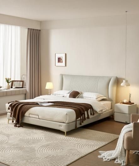 轻奢风软床,艺术感竖琴高床屏,分线工艺如琴弦般精细;弧形折耳设计,饱满有支撑。厚实猫爪皮面料,柔软顺滑,不易粘毛,无惧顽皮毛孩子。多层实木排骨架,加密加粗,床体稳固不易晃,舒享每夜好眠。