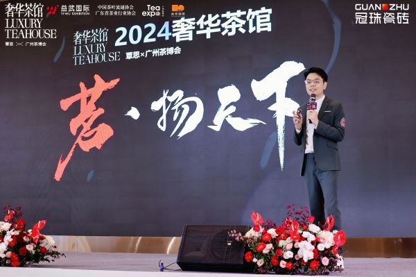 广州益武国际展览有限公司董事总经理李广韬先生在演讲中,深入讨论了广州茶博会努力提升茶行业质量和影响力的长期目标。他提到了与覃思老师、冠珠瓷砖合作共建“奢华茶馆”的决定,不仅让传统茶文化以更现代、更高端的方式呈现在大众视野中,同时以“奢华茶馆”为载体,将设计界、建材界、艺潮界与茶商界完美融合,多圈层提升传统茶文化的知名度和影响力,让更多人深入了解传统茶文化的魅力。