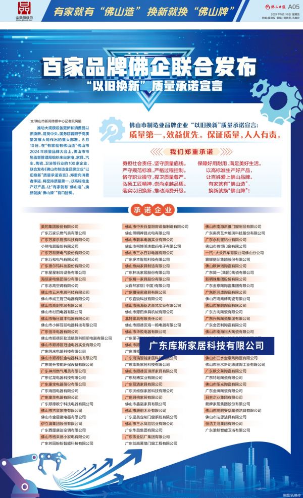 百家品牌佛企联合发声,库斯家居发布“以旧换新”质量承诺宣言