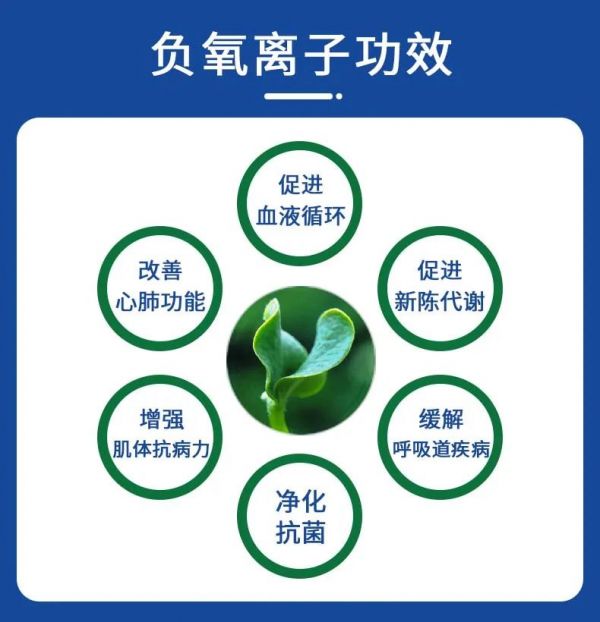 负离子又被称为负氧离子,在医学界享有“维他氧”“空气维生素”“长寿素”等美称,由空气中的氧分子结合自然电子形成;人体吸入一定浓度的负离子能够调节神经系统功能,改善睡眠、抗氧化、防衰老、清除体内自由基、降低血液粘稠度的效果;当空气中负离子浓度达到700个/cm³以上时,人体感觉舒适;当负离子含量≧1000个/cm³时,对人体有保健作用。世界卫生组织研究发现,我国广西巴马长寿村的百岁老人特别多,其中一个重要因素就是当地空气中负氧离子含量特别高。巴马百魔洞的负氧离子浓度高达17万个/cm³。