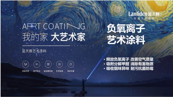 蓝天豚负氧离子艺术涂料主要有“水性类,薄浆类、厚浆类”三大类别共30余款主材及辅材单品,可创造100余种艺术工艺肌理效果,满足用户的个性需求。产品具有“肌理多样、色彩丰富、施工便捷”等特点的同时,还具有“释放负氧离子,改善空气质量、除醛、净味、抗菌、防霉、耐污、耐擦、抗裂、耐水、耐火“等多种功能特性,是时下市场流行和用户理想的高品质墙面装饰材料。