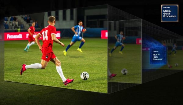 使用三星AI电视观看球赛,就像坐在球场边。每一瞬间都会在客厅里栩栩如生地呈现出来。