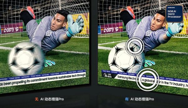 ▲ AI 动态增强Pro使用深度学习技术展现足球在比赛中的精确运动。