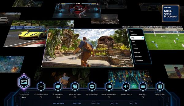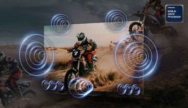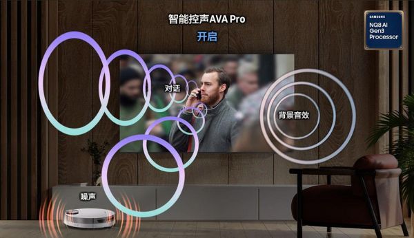 ▲ 8K NQ8 AI Gen3 芯片集 AI 音质优化、AI 画质优化和 AI 自适应模式于一身,带来无障碍的观看体验。