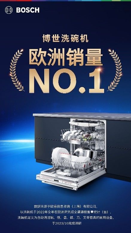 随着博世家电在中国市场的发展,2018年,博世家电专为中国家庭打造的洗碗机面世,更好地回应了本土化需求。2022年,博世3重盾护系列洗碗机及空间大师系列洗碗机正式推出,不仅提升了碗碟净洗的除菌健康水平,更优化了碗碟存储空间;2023年,博世家电开创洗碗机灶下安装标准,为洗碗机安装提供更多可能。值得一提的是,博世洗碗机的卓越品质和技术实力深获国际市场认可,连续两年荣获欧洲销量第一认证2。