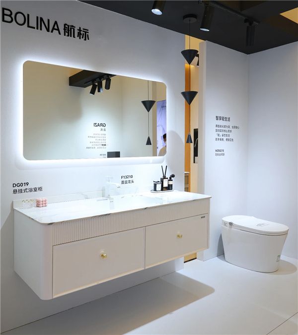 此次,在上海厨卫展航标卫浴的展位上,品牌展出的七大系列完善品类引起了不少关注,涵盖了:智能坐便器、陶瓷洁具、浴室柜、浴缸、淋浴房、五金龙头、橱柜定制等七大系列,能够为用户提供全场景一站式卫浴解决方案。