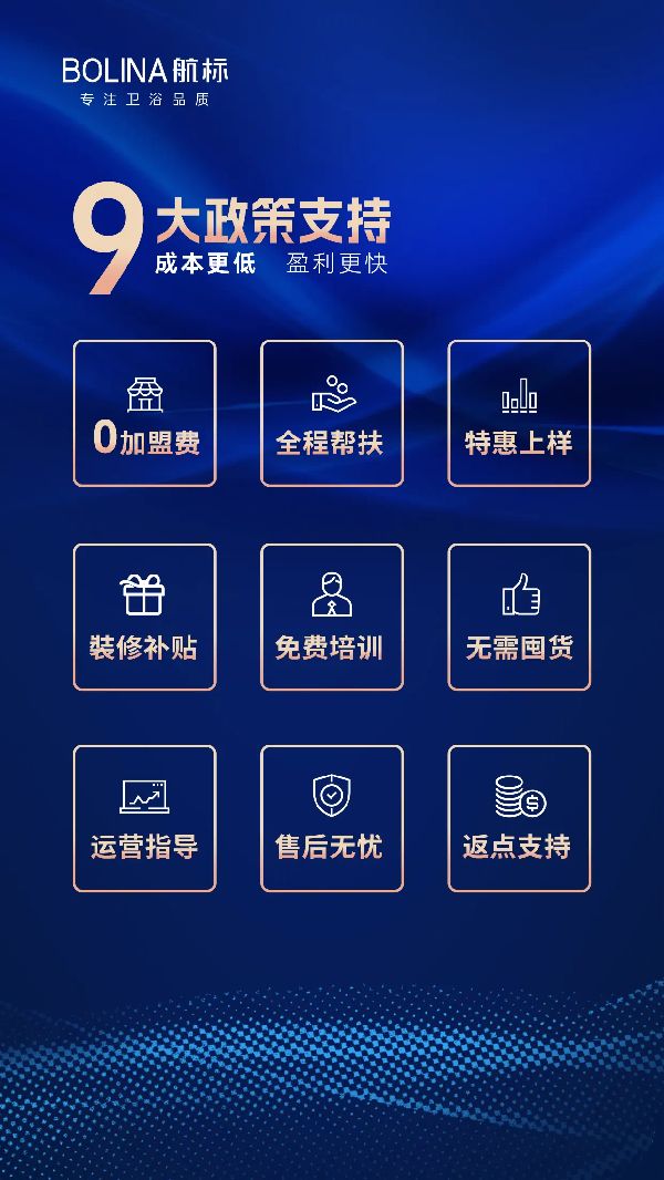 近些年来,航标卫浴也一直在探索更加适配市场发展变化的合作模式。在本届上海厨卫展,航标卫浴推出“0加盟费”“0保证金”“无需囤货”“全程帮扶”“装修补贴”“返点支持”等多种方式的支持,以最大力度携手经销商合作共赢。