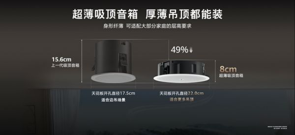 音乐是家的灵魂,它能够打动人心、舒缓压力、唤起美好回忆。华为全屋智能的超薄吸顶音箱,以其超薄设计和卓越音质,为居家体验增添了一份高级感和舒适度。8cm超薄音腔设计,比传统吸顶音箱更薄,仅需90mm嵌墙深度即可安装,适配各种户型。全新结构设计提供定制听音绝佳声场,创造出沉浸式音乐体验。采用石墨烯镀层工艺高音单元和碳纤维材料的全频喇叭,音质更清晰、卓越。在软件方面,华为全屋智能音乐系统采用Histen算法,提供多种播放音效,高频舒适不刺耳。无论是在休闲时光还是工作状态下,用户都能够享受到沉浸式音乐享受。