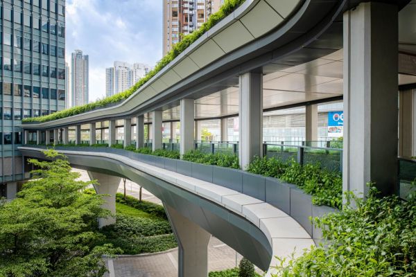 新建的行人天桥将大楼与邻近新蒲岗区域无缝连接,让大楼以更亲和的形象融入社区,加 强社区流通性。