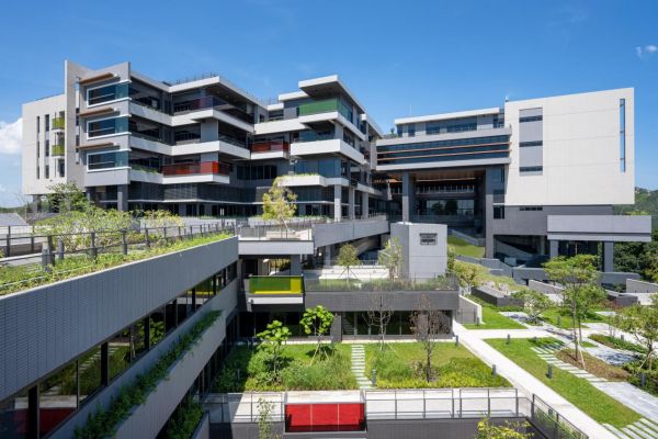 而 11 号大楼邻近生态保护区,将以共享住宅为概念,提供 100 个住宿单位。设计以阶梯 式接壤自然环境,配合地面缓跑促进建立紧密和谐的社区关系,并鼓励住户养成可持续低 碳的生活习惯。 一系列高能效设计包括隔热外墙、天台光伏板及混合通风系统,将助力减 少 22%的能耗。大楼亦是园区内首个采用“组装合成”建筑法(MiC) 的建筑。