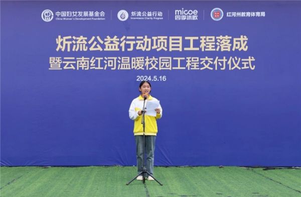 5月16日,在云南红河州政府、教育体育局的大力支持下,四季沐歌携手中国妇女发展基金会举办的炘流公益行动项目工程落成暨云南红河温暖校园工程交付仪式在红河县浪堤镇浪堤中学隆重举行。本次温暖校园工程共计交付5所学校,分别是:元阳县新街镇抛竹新寨小学、元阳县新街镇中巧小学、红河县浪堤中学、红河县车古中学、绿春县大兴镇阿迪小学。