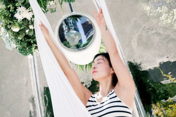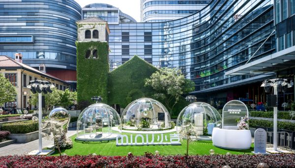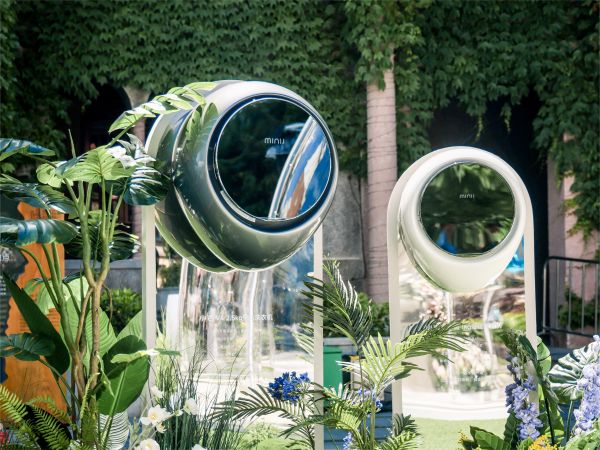 作为专注于分类新洗衣创新方式的国内新锐家电品牌,小吉本次快闪活动以一滴水为灵感。俯瞰整体场地,正圆形展区中一颗水滴孕育其中,在宁静中娓娓道来一场温柔的叙事。小吉布展风格以通透的装置空间和白绿配色为主,极简的风格在生机勃勃的植物映辉成趣,配合空中瑜伽演出,由外而内透露出极致的简约与纯粹。