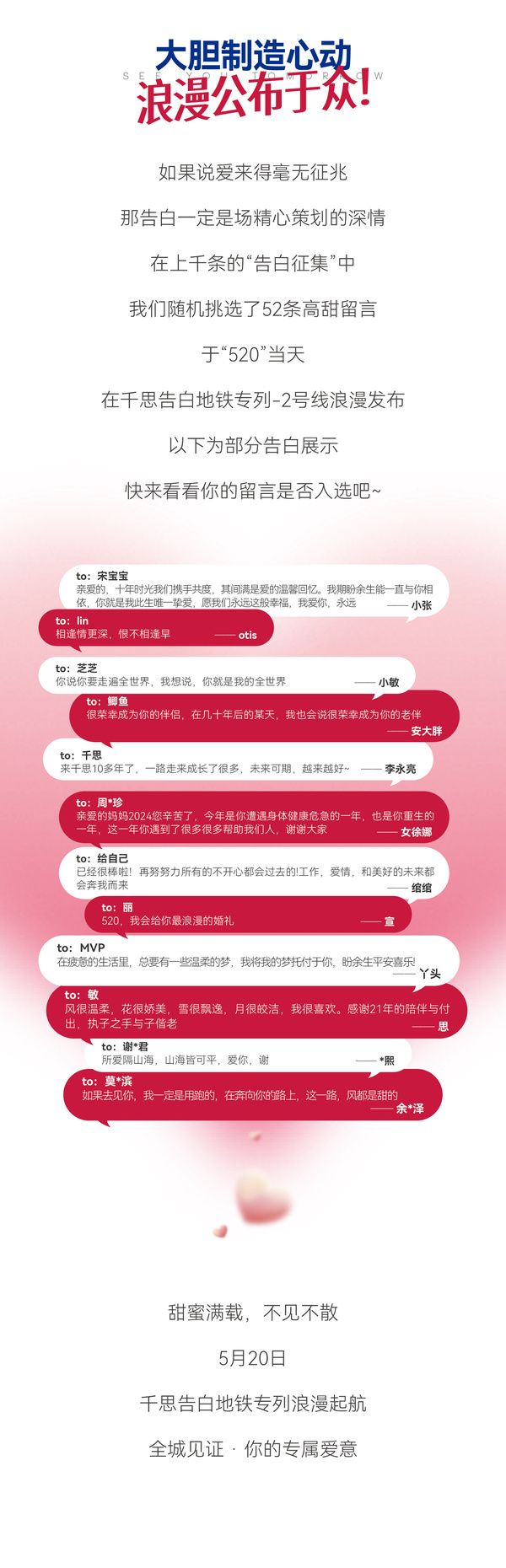 明天首发!千思520告白地铁浪漫启航!
