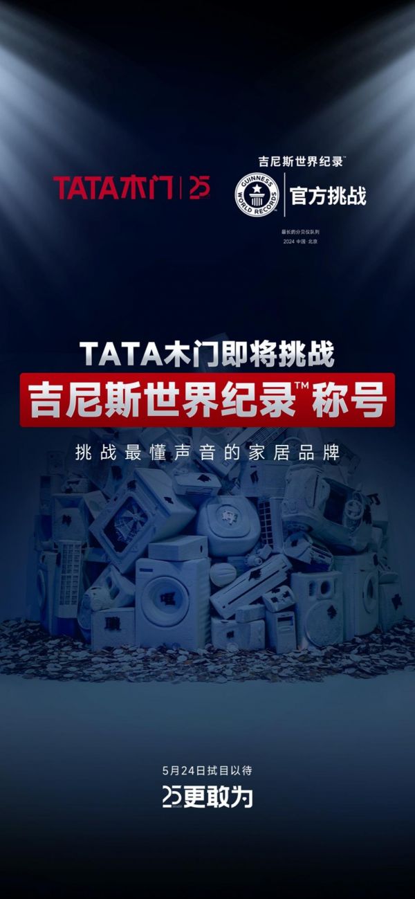 新浪家居注意到,此次25周年,TATA木门除了再次针对全新消费群体进行产品进化,还正式宣布将于5月24日向世界最长的静音分贝仪矩阵发起吉尼斯世界纪录挑战。