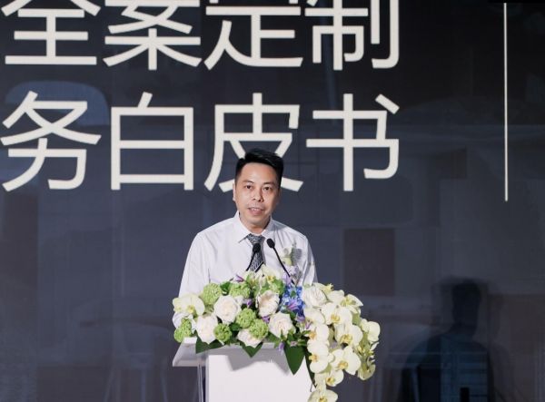 罗浮宫家居集团副总裁伍尉廷对大师空间集合体概念、全案定制服务白皮书等内容进行发布