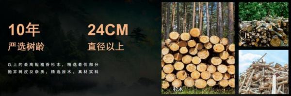芯选材:严选10年树龄,直径24 cm以上的最高规格香杉木,精选最优部分,抛弃树皮及杂质,出材率≤65%,气味清香,坚韧耐磨保用10年。