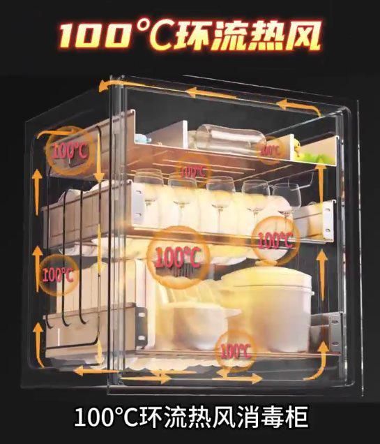 1. 消毒无死角:100摄氏度环流热风能够渗透到每一个角落,彻底灭活细菌和病毒,确保餐具无死角消毒。彻底解决了紫外线无法全面消毒,中温无法彻底灭活细菌的难题。