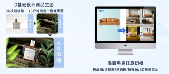 对于电商而言,一张能吸引眼球的商品图常常决定了消费者是否下单。但是,在传统流程中,商品拍摄是个高成本、长周期的工作,耗费大量人力物力,不仅需要布景搭建、手动抠图、反复修改设计,最终生成商品图。尤其是家居这类作为大件商品,更需要高效、多样化、多角度的展示方式。