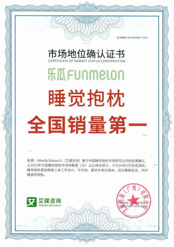 乐瓜还获得国际SGS检测认证、高新技术企业认证、德国红点机构主办“当代好设计”大奖。经中国睡眠研究会审核批准,成为[中国睡眠研究会单位会员]。代表了乐瓜在睡眠领域的专业地位。人体工学睡觉抱枕产品首创认证和人体工程学产品证书,则进一步证明了乐瓜在人体工学领域的专业性和创新性。