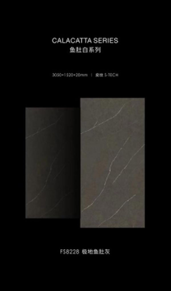 FS8228极地鱼肚灰,以高纯度石英砂为核心原材料,质地十分坚固耐磨,以其深沉而神秘的深灰为基调,散发着迷人的光泽。这种天然石材纹理经过亿万年的地质演变,呈现出高贵而典雅的质感。其自然纹理,犹如流动的音符,赋予空间无尽的想象与生命力。