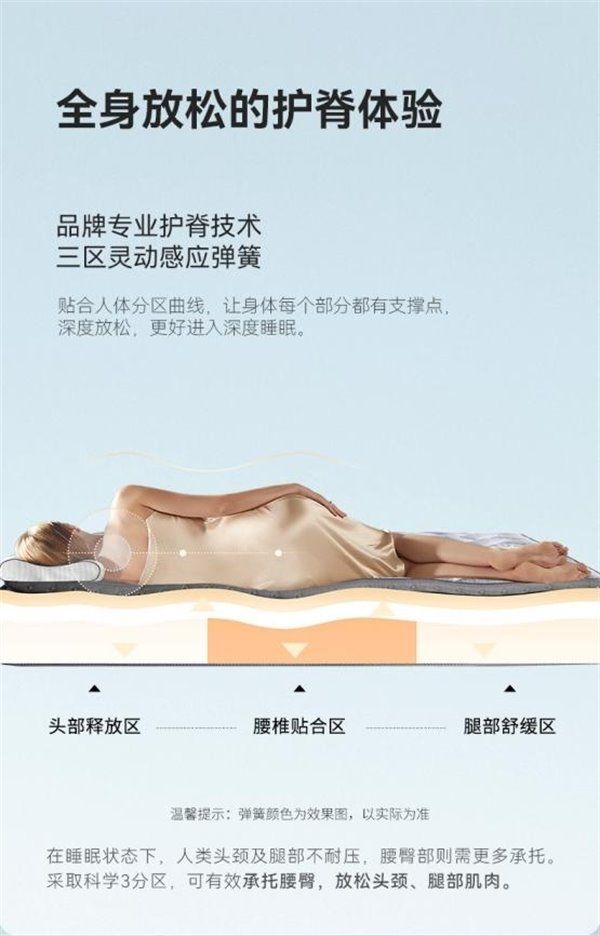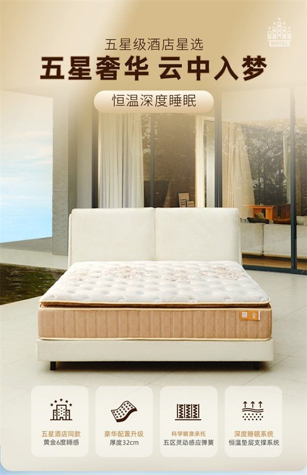 现在随着健康睡眠观念日益普及,消费者对床垫的要求已不仅仅满足于“能睡觉”单一标准,转而开始关注“如何睡得更舒服”。金可儿品牌融合护脊理念、酒店睡感与创新科技打造的五星酒店联名床垫,质感高级,支撑科学,柔韧静谧,正成为消费者的新选择。