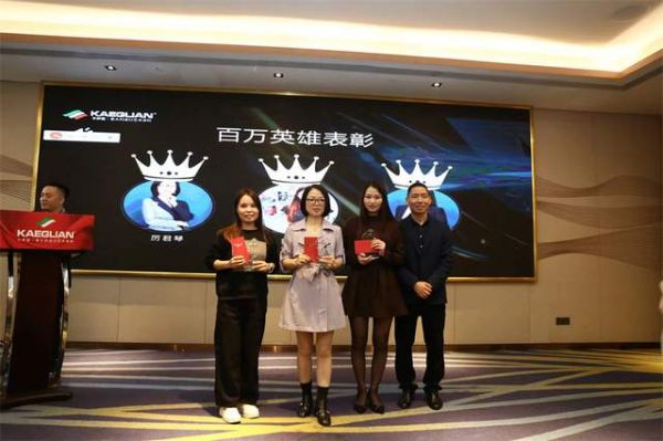 在本次年会上,我们首先对卡伊莲艺术涂料销售部的优秀员工进行了表彰,他们凭借出色的业绩和不懈的努力,成为了公司的百万英雄。这些英雄们用实际行动证明了卡伊莲艺术涂料的实力和品牌影响力。