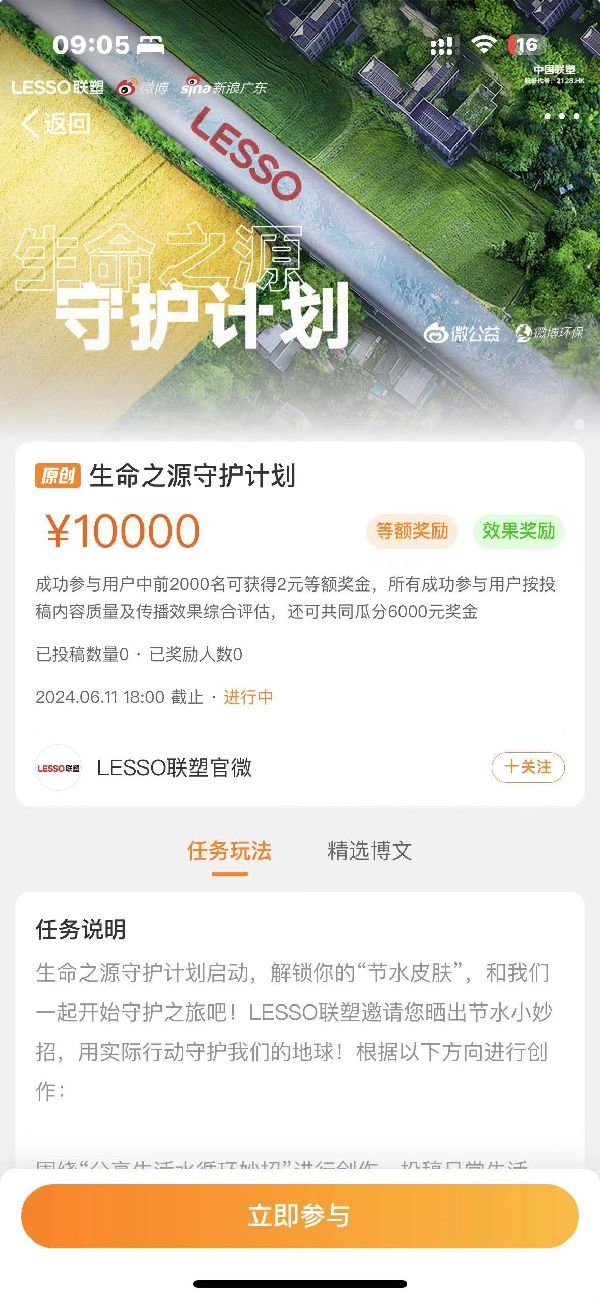 联塑官微携手微博微公益,发起“淡水生态图鉴”活动,只需点击“守护并发博”即可守护1种水生态,守护3种生态可获得“水生态守护官”荣誉徽章,还有机会参与抽奖哟。