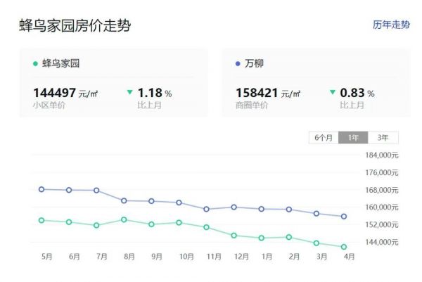 对口中关村第三小学的蜂鸟家园,一居室43平户型的房子,价格从2021年高点的成交价985万,下跌到如今挂牌价550万,3年下跌435万,下跌幅度45%,几乎腰斩。