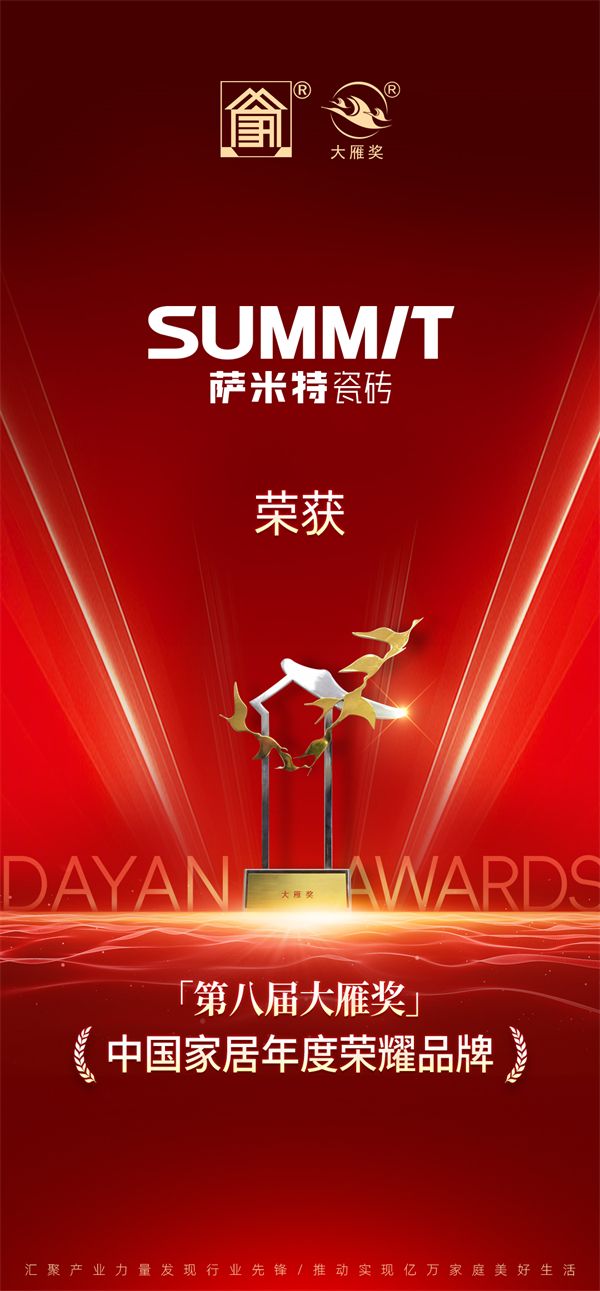 重磅揭晓!萨米特瓷砖荣获「第八届大雁奖——中国家居年度荣耀品牌」奖项称号