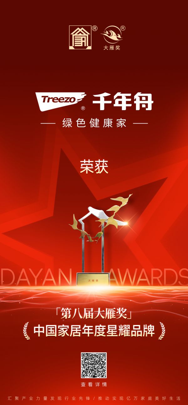 作为「第八届大雁奖——中国家居年度星耀品牌」的获奖者,千年舟将以高标准、严要求的优质板材和加工技术,奋勇前行。