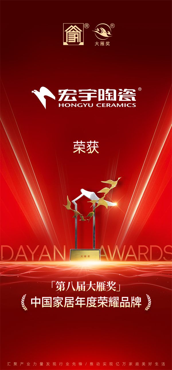 重磅揭晓!宏宇陶瓷荣获「第八届大雁奖——中国家居年度荣耀品牌」奖项称号