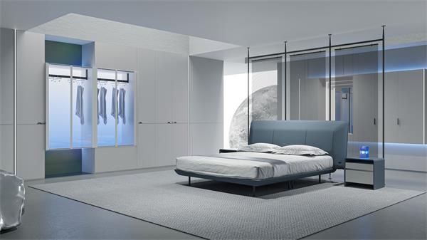 除了在美学和功能性上的突破,用户体验也是星际整家系列的另一大设计亮点。设计师们深入研究用户的需求和习惯,将人性化的设计融入到每一个细节之中。无论是家具的尺寸、形状,还是使用的功能,都在力求为用户带来z舒适、最便捷的使用体验。例如在床的设计上,创新搭载 USB充电接口,满足用户日常高频的充电需求。