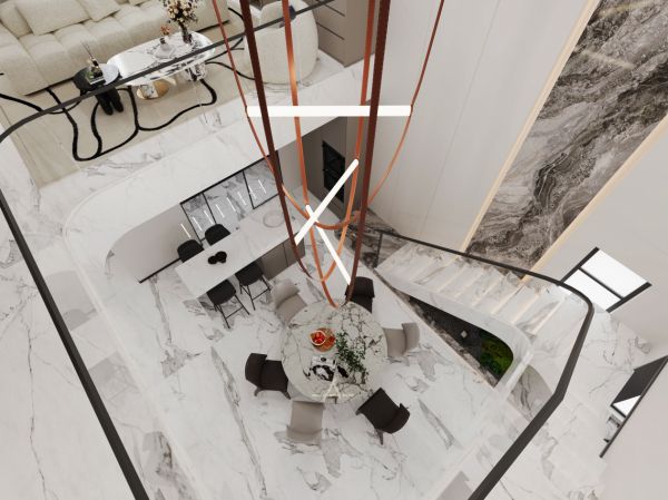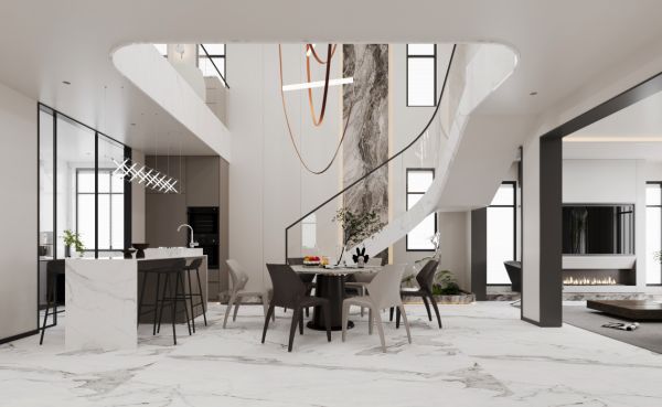 设计师针对一层和二层进行了动线重建,通过改变挑空的位置,变换楼梯的形式等,增加空间之间的联动性及墅感,使空间拥有更多的层次感。在设计过程中,我们强调结构和形式的整体性,追求材料、技术、空间表现的深度和准确性,用简约不简单的方法进行了创作。