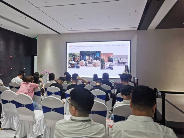 在易永强老师分享结束后,蒙娜丽莎设计部赖思婷作了此次设计师研学的第二场重要分享《米兰设计展》。赖思婷为设计师们介绍了今年举办的第62届米兰家具展展会概况,并将归纳的色彩、与自然的结合、天然材料、精湛工艺、空间曲线及流动性、灯光运用、场景形式等七大展会亮点逐一介绍。
