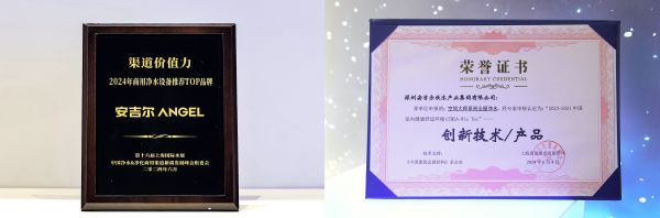 展会现场安吉尔以引领行业的创新技术,及针对不同场景多元化的解决方案,赢得海内外现场观众、行业专家、媒体代表的关注与肯定,并荣获中国净水&净化商用渠道新质发展峰会组委会颁发的“2024年商用净水设备推荐TOP品牌”称号及展会主办方颁发的“中国室内健康舒适环境CCMSA-Wie Tec创新奖”称号。