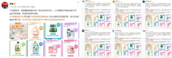 如何利用家清“赶潮”机会撬动潜在用户兴趣?天猫家清行业顺应时令和消费者痛点,携手蓝月亮、fullofhope、妙洁、立白、好爸爸、网易严选、蔬果园等家清大牌,以“梅雨赶潮计划”助力用户挑选相关家清产品应对梅雨季,撬动用户的参与感和购买欲,这波梅雨季营销出圈了!