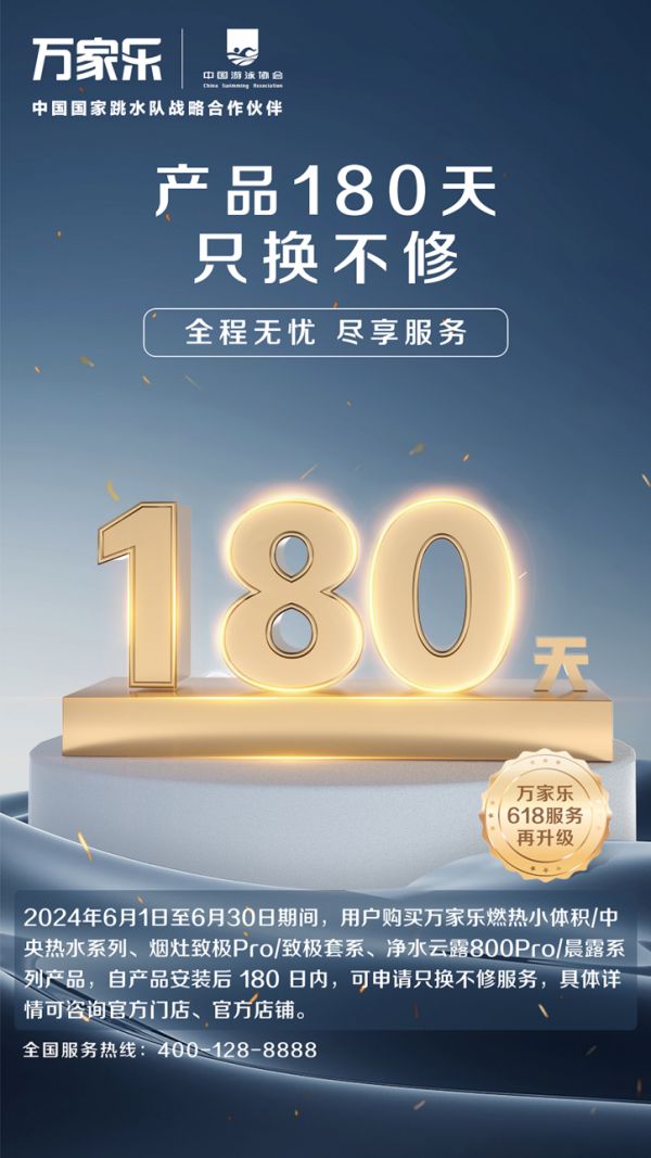 此外,万家乐售后服务也再度升级,推出“全渠道产品7天无理由退换”“产品180天只换不修”“全渠道安装乱收费11倍赔”等服务。