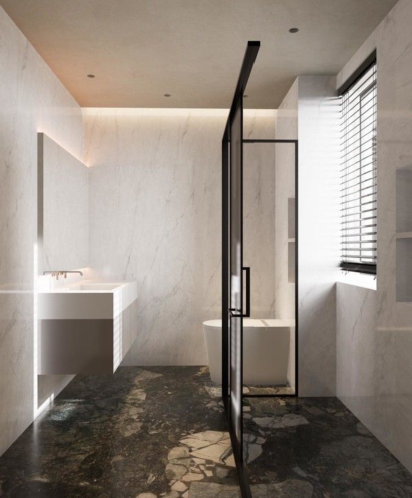 卫生间延续整体空间的轻奢风格和精致格调,以萨米特千里山色系列雾海瓷砖为墙,萨米特邸韵系列巴特米尔瓷砖为地,一深一浅的对比碰撞丰富了空间韵律,自然淡雅的瓷砖纹理勾勒出精致卫浴空间的艺术之美,深浅之间,光影之上,尽显对品质生活的理智追求。