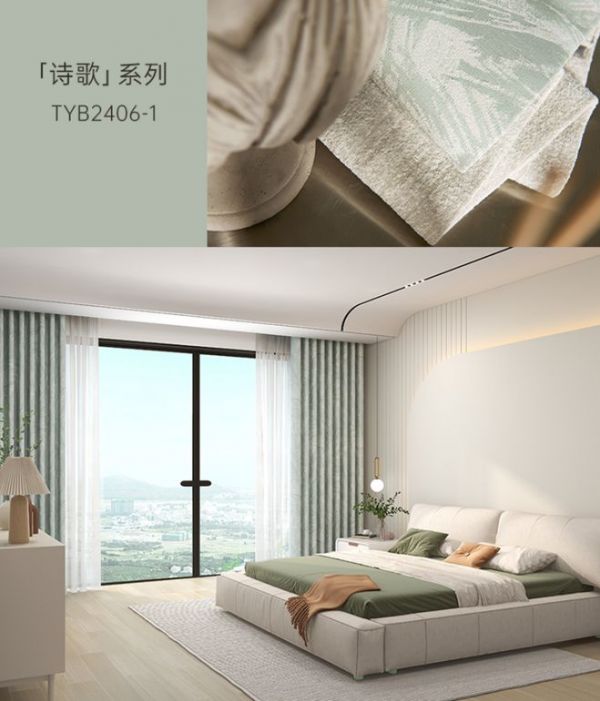 天洋窗帘雪尼尔面料,纹理设计独出心裁,手感顺滑柔软,遮光率高,是夏日窗帘的不二之选。设计师力荐的新品《诗歌》,取灵感于大自然的精美树叶、云朵纹样,融合温馨淡雅的色调,有盈盈夏日的浪漫活力感,自然艺趣点缀生活,愉悦身心。