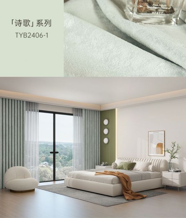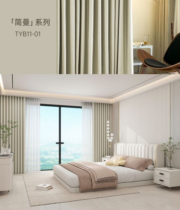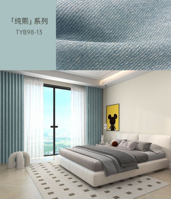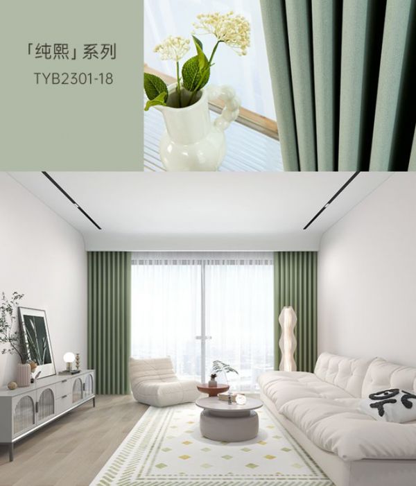 天洋窗帘棉麻质感面料,质朴简约,透气性与遮光性好,不畏夏日的强光与高温,且肌理多样,遮光率可根据需求选择,清爽配色有着视觉降温的功效,还能为空间注入满满生机感,在家中自在享受夏日里的静谧惬意时光。