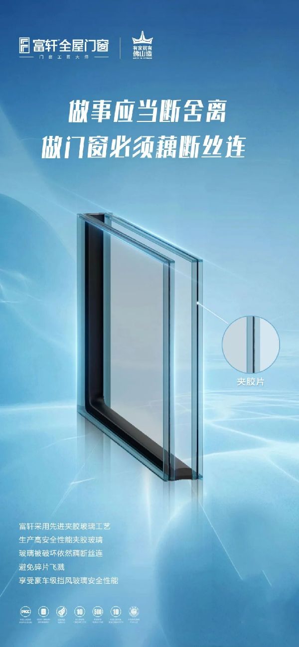 首先是在安全上,汽车的车门通常会采用一体冲压模型、加强筋、止震丁基胶、圆形钢防撞梁等装置,而富轩的门窗采用的是航空级别原生铝材,坚固抗压,入户门采用了发泡板填充铝龙骨,安全防撞击性能优越。此外,汽车车窗和铝合金门窗安全性能就显得有异曲同工之妙了,二者所采用的玻璃原片有很大一部分都是来自玻璃的四巨头——信义、台玻、南玻、福耀,而且汽车玻璃和富轩门窗的玻璃都采用了“夹胶玻璃”,在玻璃受到剧烈撞击损坏的时候,还会藕断丝连,不会造成玻璃渣的飞溅,保障安全。