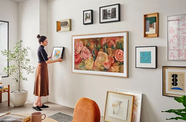 三星画壁艺术电视的外形颠覆了传统电视的设计,宛如一个纤细的画框一般与墙面完美贴合,可以融入任何家庭风格之中,为家居环境增添时尚优雅的现代感。多种色彩和风格的磁吸式边框也为用户提供了个性化的选择,用户可以根据自家的装修设计进行搭配。
