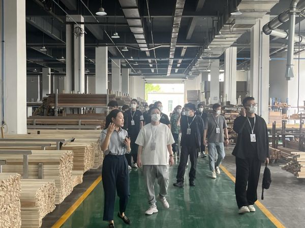 On the evening of June 6th, the designers from Jingjiang arrived in Hefei. After a night's rest, their first stop on the morning of the 7th was to visit the SUNBUY high-end customization plant in Xiatang Township, Changfeng County, Hefei City. This plant represents a new generation of digital factories established as part of SUNBUY's national strategic development. During the factory tour, the guide shared with the designers SUNBUY's development history, current business status, and future development plans. They also led the designers through the production process from the carpentry workshop to the primer workshop and finally to the topcoat workshop, showcasing different craft effects. After this hands-on experience, the designers felt more confident about SUNBUY and expressed approval of its achievements and development plans.