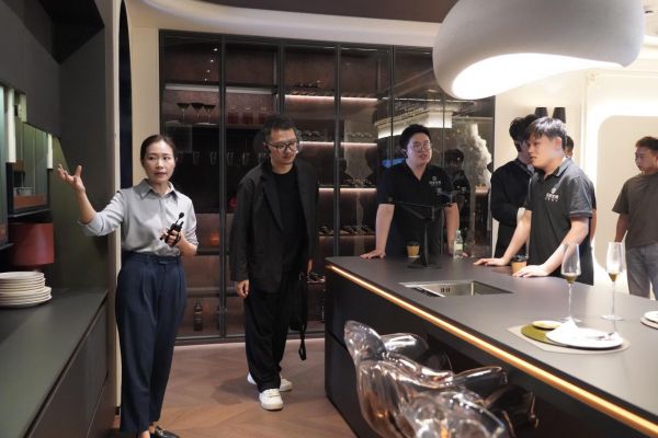 下午第二站行程是参观尚佰高定一号旗舰店,展厅面积3000平方,当设计师们到达展厅时就已经被展厅门口的7米多罗汉松所吸引,纷纷拍照打卡,展厅前户外的庭院设计给设计师们一种舒缓安静的感觉,进入展厅后不同风格的空间呈现还原了家庭生活场景,产品、智能、软装的结合完美体现了尚佰高定的“高颜值、高品质、高体验、高交付、高性价比”的产品理念,参观结束后设计师们和讲解老师进行了一些交流,对尚佰高定产品的空间设计展示、服务、品质给予了高度的认可。